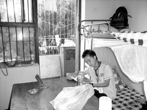 “我們在這里生活無憂,而且每天都還有志愿者和社會各界人士來探望。”尹忠偉被轉移到成都中醫(yī)藥大學下汪家拐校區(qū),和小尹同安置在該校區(qū)的還有他學校的70多名高三同學。他住在一幢6層的宿舍樓,宿舍內(nèi)窗明幾凈,地面整潔,床鋪全是新的,枕頭也是新的,甚至書本也是新的。“全是政府配置的,書本則是志愿者送的”。小尹坐在床邊的桌子旁,復習著功課。小尹說,在這里他不僅感受到了溫暖,更可以安靜迎考,他一定要考好,否則對不起幫助他們的人。