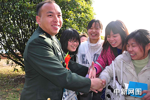 中新網(wǎng)南昌3月26日電(王劍 張曉朦) 3月26日,華東交通大學(xué)“日新論壇”上大學(xué)生們討論的焦點(diǎn)不是“周董”,也不是NBA的比賽,而是“槍王”何祥美。此前一天,“何祥美同志先進(jìn)事跡報(bào)告會(huì)”在該校舉行,何祥美被現(xiàn)場女大學(xué)生高呼“英雄哥哥”并索要簽名。