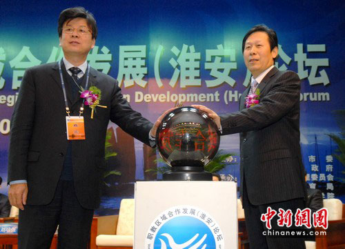論壇上,江蘇省經(jīng)濟與信息化委員會副主任陳為保和淮安市市長高雪坤共同為產(chǎn)學研合作互動平臺——江蘇省經(jīng)濟與信息化委員會培訓基地、淮安市產(chǎn)學研協(xié)會揭牌。