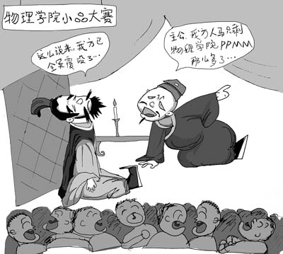 清華理工班劇這種“蔫兒壞”的惡搞傳統(tǒng),被材科系06級學(xué)生于超繼承并發(fā)揚(yáng)光大。他主創(chuàng)的班劇《材科傳奇》同樣走寫實路線,極盡搞笑之能事,在校園里很有些“粉絲”。