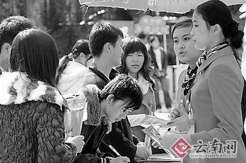 據(jù)介紹,此次前來納賢的用人單位共有近300家,包括云南白藥集團、云南電力試驗研究院、家樂福、沃爾瑪、國美電器、昆明福林堂藥業(yè)等知名企業(yè)。除此之外,服務(wù)業(yè)崗位較多,如餐飲服務(wù)員、商場營業(yè)員等,共提供了6000余個崗位給畢業(yè)生選擇。
