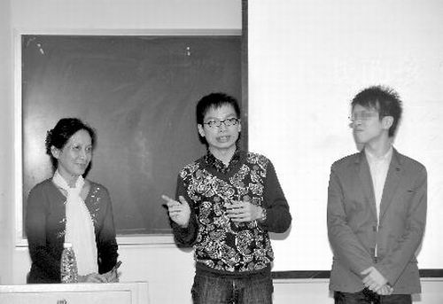 昨晚8時許,四川師范大學(xué)大學(xué)生心理健康教育服務(wù)中心和愛白成都青年同志活動中心邀請吳幼堅(jiān)、鄭遠(yuǎn)濤及其男友來到校區(qū),為大學(xué)生聯(lián)手上了一堂同性戀話題的課。