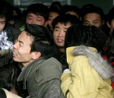 “我不能回家過年了!弊蛉障挛6時(shí)許,武漢科技大學(xué)信息管理專業(yè)2004級學(xué)生王永強(qiáng)從漢口火車站出來,手里拿著一張2月9日回老家的火車票。