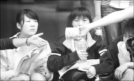 一位來自市一中的陳姓學生引起了記者的注意,他個子雖不高,也不怎么壯實,但他所攜帶的東西卻特別多,不是衣物等生活用品,主要是兩大捆高三年級的復習資料書,而且有幾本書看起來明顯一樣。他告訴記者,自己家在這次地震中還算幸運,父母家人都很安全,房子由于是新房,損失不大,但他有幾個在其他學校讀高三的朋友卻受災比較嚴重,想到這次到溫江能見到他們,就多帶了一些復習資料:“可以給他們用,也可以提供給其他同學復習用,我想為大家做點力所能及的事情。”