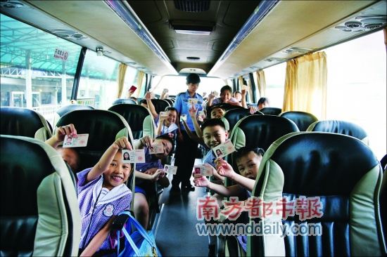昨天開學(xué),跨境學(xué)童坐上校巴,開心地展示過關(guān)證件。通訊員劉卉攝