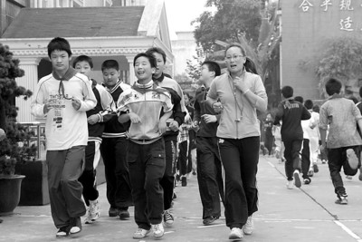 敬業(yè)中學(xué)地處黃浦區(qū)中心地段,是名副其實的“迷你校園”,1500名學(xué)生擠上一個小操場跑步,根本不現(xiàn)實。該校德育主任諸偉說,學(xué)校已做好“長跑方案”,擬用50米往返跑代替2000米長跑,另外還將開展“跳踢比賽”,即跳長繩、短繩、花式繩和踢毽子等活動!拔覀円哺杏X初中生一次性加到1500米有難度。 ”盧灣區(qū)中山學(xué)校副校長徐群力說,學(xué)校打算為長跑設(shè)一個“準備期”,給學(xué)生一個適應(yīng)過程,“以前我們一直做兩遍操,現(xiàn)在改成做一遍,用一遍操的時間來跑步,天冷了,就用長跑替代做操!泵刻煜挛3:30過后,學(xué)校還會以年級組為單位開展小型多樣的比賽,例如小型籃球友誼賽、跳長繩比賽和踢毽子比賽。