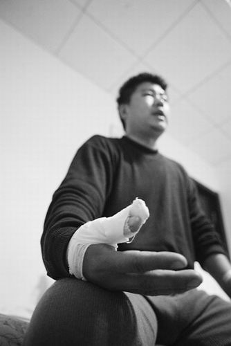 昨日(10月28日),記者在農安縣醫(yī)院見到了崔老師,他眼眶青紫,臉腫著,已經(jīng)骨折的右手拇指纏著繃帶。據(jù)崔老師回憶,10月27日17時10分許,他接到班上女同學電話,說有一群20左右歲的男青年來班上找人,這些人酒氣熏天,有的提著棒子,有的還拿著刀,氣勢洶洶地點名要找班上一名姓馬的同學算賬。崔老師接到電話立即跑向教室。此時,距上晚自習還有近20分鐘,教室里有10多名同學,其中有兩名男生。