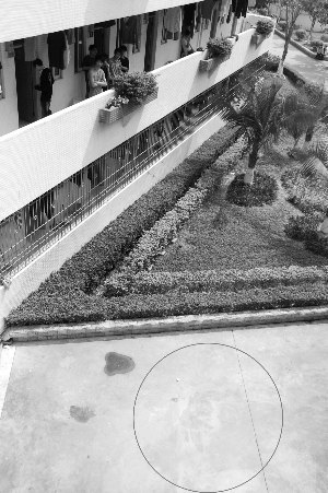 昨日中午12時許,記者趕到事發(fā)學(xué)校。在事發(fā)宿舍樓2號樓南側(cè)圍墻位置,仍可看見地面上殘留有一大攤血跡。相關(guān)部門工作人員正在宿舍樓內(nèi)進(jìn)行調(diào)查。據(jù)該樓一名學(xué)生介紹,他們在凌晨6點多聽到外面很吵,跑出來一看,才知道是有人跳樓了,隨后很快就看到救護車和警車陸續(xù)趕到現(xiàn)場,據(jù)說跳樓的就是該校學(xué)生,已經(jīng)當(dāng)場死亡。