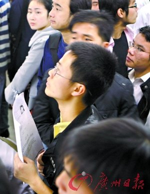 中心人才市場的數(shù)據(jù)表明,前日到場求職的大學生人數(shù)比春季首場高校畢業(yè)生(東莞)供需見面會的學生人數(shù)少了一半。相關負責人分析,雖然當前的就業(yè)形勢嚴峻,但是“各種各樣的招聘會密集,四處奔走的求職大學生已經(jīng)有些疲憊,出現(xiàn)了‘求職疲勞’,當然這也和宣傳有關,可能部分學生不了解這場招聘會的信息”。
