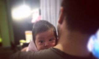 歐弟愛(ài)女趴父親肩頭好奇望鏡頭