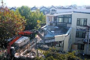 昨日,亦莊一棟洋房社區(qū)內(nèi)一棟別墅的違建部分被城管部門強(qiáng)拆。本報(bào)記者 吳江 攝