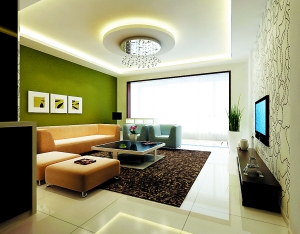 在本設(shè)計案例中,設(shè)計師利用戶型本身具有的寬闊視野,協(xié)調(diào)整體布局,將現(xiàn)代簡約風(fēng)格之美體現(xiàn)得淋漓盡致。整體設(shè)計以淺色、暖色調(diào)為主,地毯和木質(zhì)門溫暖的材質(zhì)融合了茶幾黑色冷峻的色調(diào),在空間上達到冷暖的和諧,搭配松軟、舒適的沙發(fā)給居室營造出溫馨、輕松的感覺。墻面的設(shè)計是此作品的亮點,電視背景墻的線條自然,圖案打破整個格局內(nèi)的單一性。而對面的墻壁采用了柔軟的蘋果綠色,通過簡單的幾幅畫框來點綴出雅致的居家氛圍。