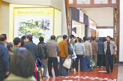 12月5日,上海房展會(huì)吸引了不少購(gòu)房者。在一家房產(chǎn)商的展臺(tái)前,登記會(huì)員的市民排起了長(zhǎng)隊(duì)。