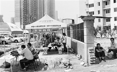 近日,在剛剛收房不久的常營(yíng)兩限房富力陽(yáng)光花園小區(qū)門(mén)口,數(shù)十家裝修公司聚集在路邊,搭起帳篷“門(mén)臉?lè)俊弊錾狻?/p>