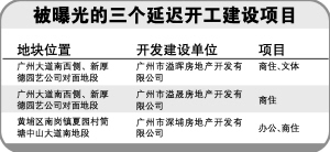 廣州市國土房管局首次在其網(wǎng)站上曝光了三個(gè)延遲開工建設(shè)的項(xiàng)目,并發(fā)公函催促其在限期前動(dòng)工開發(fā)建設(shè)。對(duì)逾期仍未動(dòng)工者,市國土房管局將依法進(jìn)行處置。