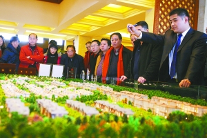 北五環(huán)外一高檔別墅樓盤,50晉商聽(tīng)樓盤講解員講解樓盤。本報(bào)記者 秦斌 攝
