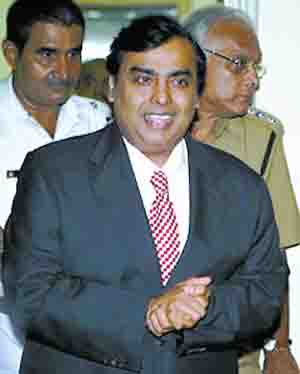 圖:身價(jià)430億美元、在福布斯榜上名列第5的印度富豪穆凱什·安巴尼。由其掌控的信實(shí)集團(tuán)把握著印度諸多經(jīng)濟(jì)領(lǐng)域的命脈,2002年時(shí)該財(cái)團(tuán)的總資產(chǎn)相當(dāng)于印度GDP的3.5%。圖片來(lái)源:北京晚報(bào)