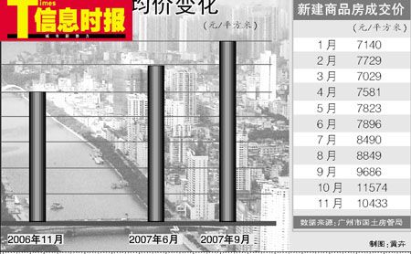 “過山車”,以這項(xiàng)運(yùn)動(dòng)的感覺來形容2007年的廣州樓市是最好不過了,但車中人是刺激,歡喜,還是擔(dān)憂,則因人而異。據(jù)廣州市國土房管局統(tǒng)計(jì)顯示,截至去年11月廣州市新建商品房成交均價(jià)已上升到10433元/平方米,比前年同期漲了3244元/平方米,升幅45.12%!但到了11月底和12月份,不少地產(chǎn)商或明或暗降低了價(jià)格。