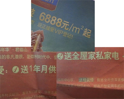 深圳英郡年華業(yè)主劉先生:“原來(lái)是12000元,現(xiàn)在是6888元,送裝修,送全套家電,名牌家電,它做的廣告就是說(shuō)帶個(gè)牙刷就可以入住,說(shuō)非常超值,據(jù)說(shuō)下一步還會(huì)送車,上次來(lái)的時(shí)候開(kāi)發(fā)商就承諾,會(huì)在10套房子里面送一輛車。”