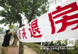 在售樓處門外,記者看到一位市民拉起了寫有“堅(jiān)決退房”等字樣的橫幅和標(biāo)語(yǔ),樓盤的安保人員不僅沒有制止的意思,甚至還打電話給朋友說樓盤降價(jià)了,趕緊來買房。短短一個(gè)上午,世茂濱江的售樓處便會(huì)集了十多位來“討說法”的買房人,其中一位甚至拉住來看房的市民,一個(gè)勁地說開發(fā)商不誠(chéng)信,房子不能買。