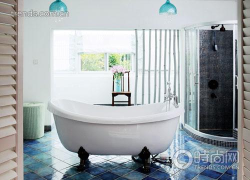 細節(jié)是小米比較關注的。主浴室兼顧了清潔與休閑兩個功能,地面是湛藍湛藍的光面磚,白色的墻身,延續(xù)著地中海的藍與白,“因為浴室最重要的功能是放松,所以選擇的色系盡量簡單純凈,用刷白了的竹子作為大空間的隔斷,主要是做視覺上的劃分,分隔出清潔區(qū)與休閑區(qū):清潔區(qū)就是浴缸及洗手盆那一區(qū),主要突出功能的一面;我將陽臺打通,做出一個女性都會喜歡的陽光花房作為休閑空間,雅致的淡綠色布簾幔與窗外的綠意相合。浴室就是身心放松的空間,是我設計里比較注重的地方。”