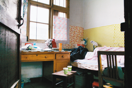 爬上一家民房狹窄而昏暗的樓梯,就是馬潔居住的地方。這間不足10平方米的屋子里,靠北的窗戶下放著一張上世紀(jì)80年代曾很流行的“一頭沉”,桌面上擺著一本《心理咨詢》。馬潔說,這兩天她正在準(zhǔn)備一個考試。這張桌子兼做書桌、飯桌和辦公桌。東面的單人床占據(jù)了整間房子的三分之一,桌子的另一邊,放著一張小茶幾,堆滿了洗滌用具和餐具,兩者之間并無清楚界限。床頭的墻上貼著一張寫得整整齊齊的菜單,這讓記者有些驚訝!板佋诖驳紫隆,她自嘲地說,“電飯鍋、電磁爐,是我花了近500塊錢購置的!