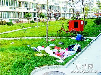 記者昨天上午11時趕到華龍苑北里小區(qū),發(fā)現(xiàn)小區(qū)門口沒有一個保安,任何人都可以隨便進(jìn)出小區(qū)。更意外的是小區(qū)里很少見到垃圾桶,草坪上隨處可見居民亂扔的垃圾。