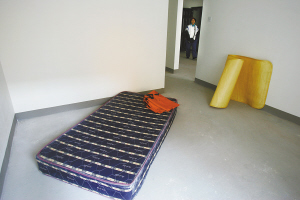 昨日上午,太平橋路首科花園華源三里9號(hào)樓西側(cè)兩棟正裝修的新樓內(nèi),從一樓到頂樓,部分房門旁都被寫上“XX已經(jīng)搶住”的字樣,樓道門也大部分安上新鎖。