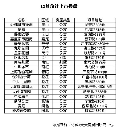 12月份,預(yù)計(jì)本市將有20個(gè)樓盤(pán)上市。業(yè)內(nèi)人士認(rèn)為,只要有合適房源上市,上海的購(gòu)房需求依然相當(dāng)可觀。