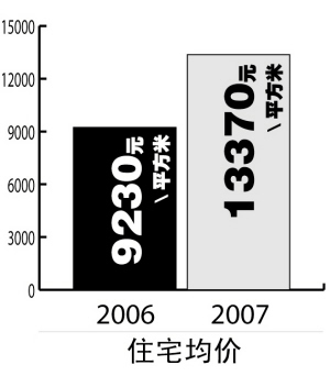 據(jù)統(tǒng)計(jì),2007年,全市90平方米以下的一手住宅銷售面積為162萬平方米,共25584套,均價11438元/m2,其面積占銷售總面積的32.33%,占總套數(shù)的50.56%;144平方米以上的“豪宅”銷售了117萬平方米,共5929套,均價21001元/m2,所占銷售面積比例為23.55%,占總套數(shù)的11.72%。