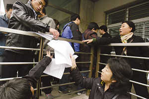 而位于東花市審核點(diǎn)的街對(duì)面,恰巧是崇文區(qū)新開設(shè)的審核點(diǎn),這里已經(jīng)排起了長(zhǎng)隊(duì)。但這里并不能接受經(jīng)適房的申請(qǐng),屋內(nèi)的幾個(gè)窗口只是在接受市民咨詢。