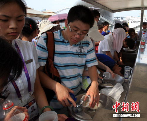 目前,世博園區(qū)共有105個直飲點,其中浦東76個、浦西29個,可同時供1568人飲水。氣溫回升和客流量增大,園區(qū)直飲點成為最“火爆”的設施。