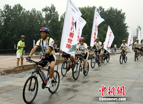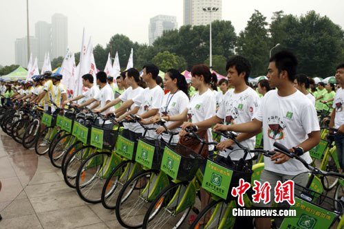 中新網(wǎng)武漢7月10日電 (艾啟平 胡志強(qiáng) 易慧)10日上午,“綠色長(zhǎng)征、傳播低碳——百企組團(tuán)千里騎行看世博”在武漢市漢口江灘啟動(dòng)。