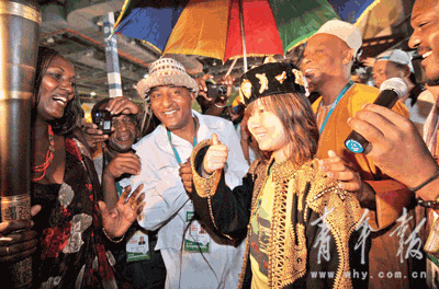 記者看到,吳晶在數(shù)十位非洲朋友與無數(shù)閃光燈的熱情招呼下,一開始還不明白究竟發(fā)生了什么事情。在儀式結(jié)束后她才定下心來對(duì)記者表示,非洲館是她今天去的第一個(gè)展館,真是沒想到會(huì)給自己帶來如此驚喜。