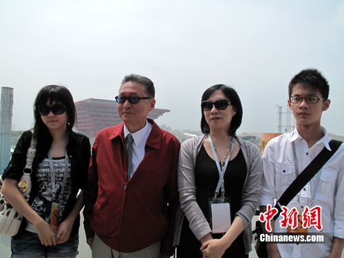 中新網(wǎng)8月28日電 臺(tái)灣著名作家李敖今日攜全家繼續(xù)上海世博行。從上午九點(diǎn)半開始,李敖一行先后參觀了西班牙館、意大利館和沙特館,領(lǐng)略異國(guó)風(fēng)情和文化。在沙特館頂部的觀景臺(tái),他以中國(guó)館為背景與全家合影留念。