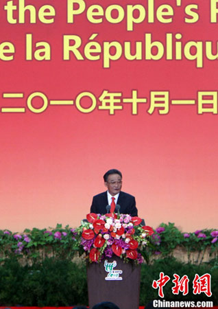 中新社上海10月1日電(記者 李佳佳)中華人民共和國61周年華誕之際,上海世博會迎來了東道主中國國家館日。