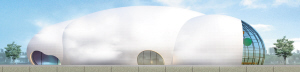 這個命名為“云中水滴”的展館外觀采用亮白色膜結(jié)構(gòu),形如云狀,膜布上均勻布滿噴霧點(diǎn)。當(dāng)噴霧全部開啟時,整個展館宛若一朵漂浮在霧氣中若隱若現(xiàn)的白云。如果此時陽光高度角恰好小于42度,游客就可以在世博園區(qū)內(nèi)欣賞到“霧中彩虹”。