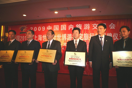 4月16日,國(guó)家旅游局和上海世博局在大連正式公布首批24家上海世博會(huì)境內(nèi)世博游指定旅行社名單,并向其授牌。