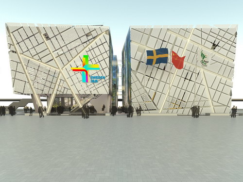 瑞典館是首個(gè)奠基的北歐國家館,占地3000平方米。建筑根據(jù)瑞典式可持續(xù)性理念,進(jìn)行可循環(huán)利用設(shè)計(jì)。參觀者可以在鏈接瑞典館內(nèi)部的十字形立體通道內(nèi)穿梭往返,這個(gè)特別的通道從建筑的整體上象征著城市與鄉(xiāng)村的和諧互動(dòng)。
