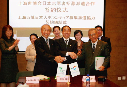 上海世博會志愿者招募工作已于5月1日正式啟動,面向全球招募七萬園區(qū)志愿者與十萬城市服務(wù)站點志愿者。目前,兩家機構(gòu)已合作成立了“上海世博志愿者協(xié)力實行委員會”,專門負(fù)責(zé)日本志愿者的招募派遣工作,以及對日本志愿者進(jìn)行上海世博會基本情況、中國國情、中文等方面的培訓(xùn)。
