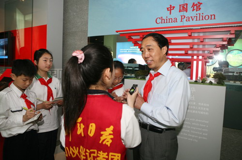 5月19日,上海世博局黨委副書記、紀(jì)委書記許偉國接受了上海市第六次少代會代表及《少年日報》小記者的采訪。小記者們就上海世博會學(xué)生優(yōu)惠門票、小朋友如何參與上海世博會等問題進(jìn)行了提問。