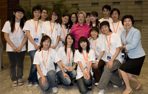 參觀結(jié)束時,來自京滬兩地的“走進世博會”展覽青年志愿者們自發(fā)等候在展廳出口處向“吳奶奶”問好。吳儀鼓勵大家要當好世博會志愿者,并與他們合影留念。