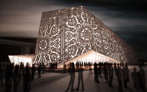 今年3月,世博會(huì)波蘭館公布了展館建筑設(shè)計(jì)方案。根據(jù)設(shè)計(jì)方案,波蘭館的外觀將猶如折疊的紙張,在設(shè)計(jì)上融合了波蘭傳統(tǒng)民間剪紙藝術(shù)和現(xiàn)代時(shí)尚元素,鏤空花紋的剪紙圖案營造出明暗對(duì)照的獨(dú)特透光效果,在“人類創(chuàng)造城市”的主題下,聚焦城市多元文化的融合以及城市和鄉(xiāng)村的相互影響,傳達(dá)出人是現(xiàn)代城市最重要主體和創(chuàng)造者的信息。3000平米的波蘭館將包括展覽區(qū)、表演區(qū)和服務(wù)區(qū)等幾個(gè)部分,內(nèi)部空間設(shè)計(jì)富有幾何趣味,包括了一系列斜坡,契合“剪紙”的設(shè)計(jì)概念,靈活的空間設(shè)計(jì)如夾層等可以創(chuàng)造性地被分割成不同部分,用作展區(qū)、音樂演出區(qū)、餐廳以及小賣部等。在館內(nèi),參觀者能通過鏤空花紋欣賞到室外照進(jìn)來的日光和其產(chǎn)生的明暗效果。