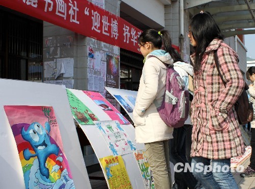 12月22日,安徽師范大學(xué)學(xué)生正在觀看“迎世博”書畫作品。當(dāng)日,安徽師范大學(xué)赭麓書畫社舉辦“迎世博 抒華章”書畫作品展覽活動(dòng),展出了86件由大學(xué)生自己創(chuàng)作的迎世博書法、繪畫作品,吸引了不少大學(xué)生的目光。隨著2010年上海世博會(huì)日益臨近,安徽師大學(xué)生舉辦了一系列活動(dòng)來(lái)表達(dá)對(duì)世博會(huì)的期盼和祝福。中新社發(fā) 劉淮宇 攝