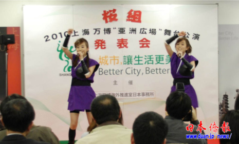 發(fā)表會上,櫻紅丸和櫻蘭丸表演了即將在上海世博會亞洲廣場公演的三首曲目,火爆的勁舞、動感的歌喉,向現(xiàn)場觀眾傳送著炙熱的青春氣息。