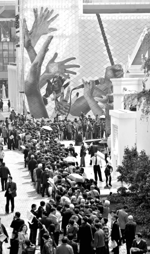 如同中國館一樣,記者在沙特館、巴基斯坦館看到,觀眾的排隊(duì)秩序十分有序,隊(duì)伍行進(jìn)的速度也明顯加快。由于今天有西班牙館、日本館等更多的場(chǎng)館投入試運(yùn)行,組織者通過園區(qū)廣播、電子顯示屏等終端不斷循環(huán)播放相關(guān)信息,參觀者分流速度很快。