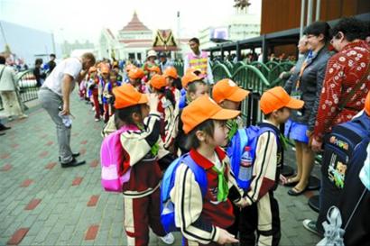 這兩天,世博園里出現(xiàn)了很多身著校服,組隊(duì)游覽的中小學(xué)生。原來(lái),他們都是參加“考后世博游”的孩子。期末考試結(jié)束后,本市和外省市的不少中小學(xué)立即組織學(xué)生前往世博園,把這里當(dāng)作了新的課堂。對(duì)此,華師大副校長(zhǎng)任友群教授表示,中小學(xué)應(yīng)充分利用世博會(huì)資源,在即將到來(lái)的暑假和新學(xué)期中,由老師帶領(lǐng)學(xué)生進(jìn)園區(qū),開(kāi)展“世博教學(xué)”。