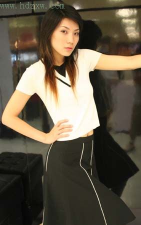 內(nèi)斂和個性融合得比較好的一套職業(yè)套裝,適合出席正式商務(wù)會談。衣服和裙子的黑、白條紋使整體造型干練不失沉悶。黑白鑲嵌的A字領(lǐng)設(shè)計,襯托模特臉形的直線型輪廓。下半身搭配富有懸垂感的A裙,帶一點柔媚氣息。