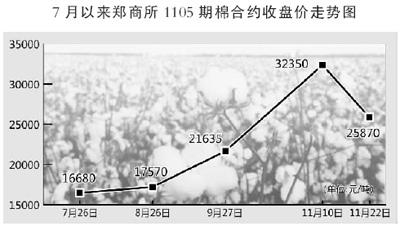 以鄭商所棉花期貨的主力合約——明年5月到期交割的棉花期貨為例,該期貨今年9月份開始一路暴漲,當(dāng)月棉價暴漲達(dá)20.83%,9月底報收2.16萬元/噸;10月份再漲25.9%,報收2.72萬元/噸,到11月初更是突破3萬元大關(guān),11月10日的盤中最高價為3.37萬元/噸,短短3個月時間里,期棉價格就漲了一倍。不僅棉花期貨,白糖、食用油等農(nóng)產(chǎn)品期貨都出現(xiàn)暴漲。