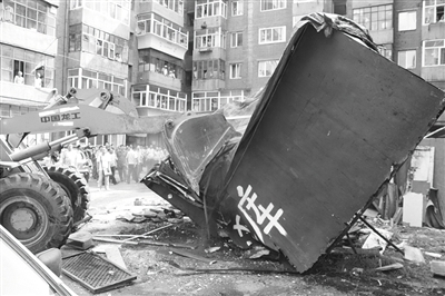 23日14時許,記者隨同80余名執(zhí)法人員來到現(xiàn)場,經(jīng)執(zhí)法人員連日調(diào)查發(fā)現(xiàn),遼陽街57號院內(nèi)共有私建車庫11處,房主不能提供任何審批手續(xù),并拒不自行拆除。當(dāng)執(zhí)法人員調(diào)動鏟車準(zhǔn)備進(jìn)行拆除時,一家車庫的房主將吉普車?吭谲噹烨,不讓鏟車靠近,并站在車庫門前對執(zhí)法人員進(jìn)行辱罵。其中一名男子更是拿出把30多厘米長的大長砍刀,揚言靠近傷到不負(fù)責(zé),并在執(zhí)法人員面前揮舞砍刀,一名執(zhí)法人員受傷。他一邊揮舞砍刀一邊對執(zhí)法人員進(jìn)行辱罵,站在旁邊的3名男女不時地推搡執(zhí)法人員,阻止拆除工作。面對恐嚇和威脅,執(zhí)法人員采取措施將私建房主隔離現(xiàn)場,并調(diào)來拖車將擋在車庫前的吉普車拖離現(xiàn)場后立即開展拆除。隨著鏟車的轟鳴聲,11處侵占居民生活空間的私建車庫被強(qiáng)拆。